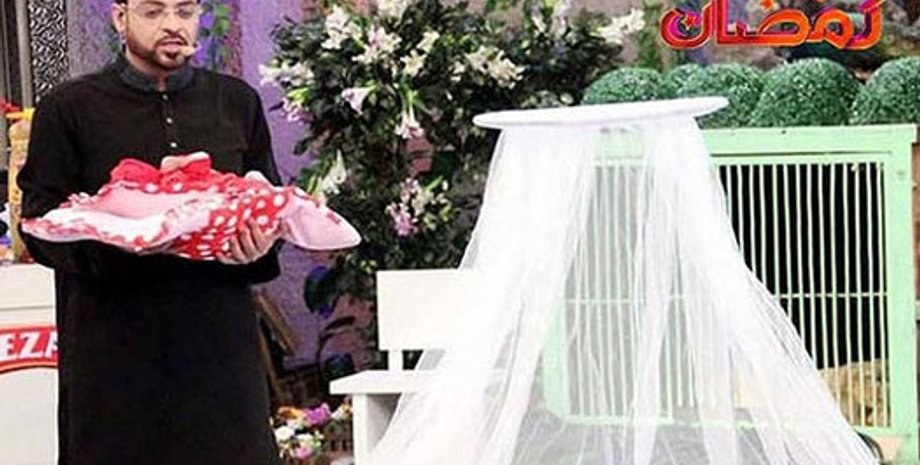 В очередном выпуске популярной телепередачи, который випал на Рамадан, ведущий Аамир Лякуат Хуссейн показал зрителям младенца, завернутого в одеяло, и заявил: "Вот симпатичная девочка, которую кто-то оставил в куче мусора".