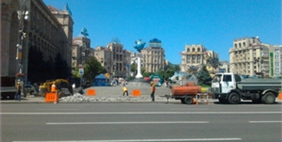 В понедельник 29, июля, в Киеве на Майдане Незалежности начались ремонтные работы по замене тротуарной плитки