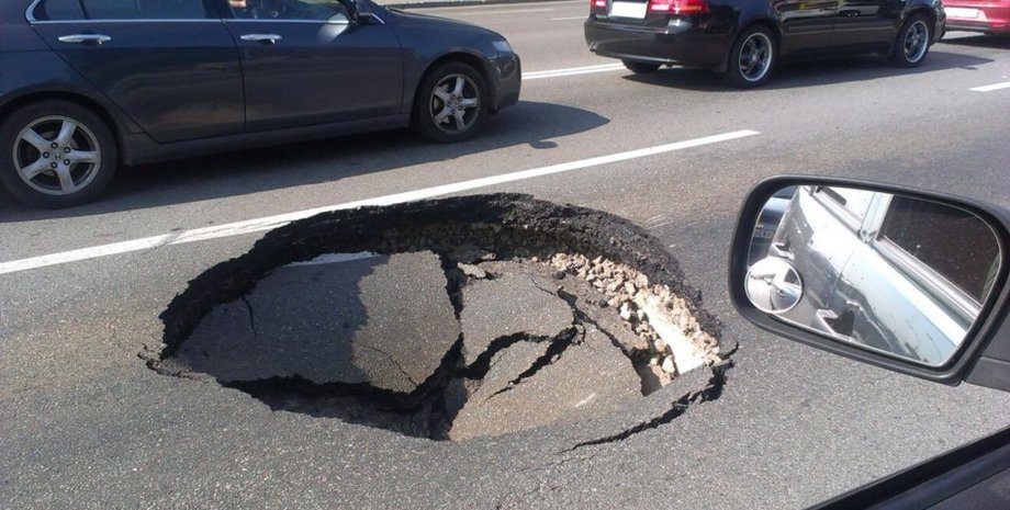 Главный инженер "Киевавтодора" Василий Мельниченко сообщил, что провал на автодороге вблизи моста Патона в Киеве будет ликвидирован в течение ближайших суток