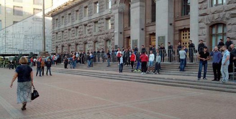 Возле здания Киевского городского совета с ночи дежурили активисты, которые сегодня, 19 августа, намерены блокировать заседание совета, которое они считают незаконным.