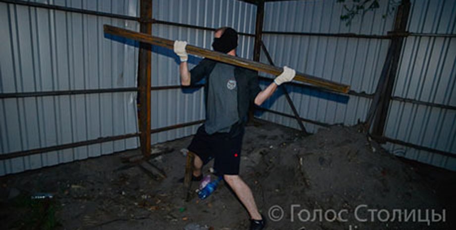 Жители Киева вместе с активистами от партии ВО Свобода вечером 20 августа снесли забор вокруг стройки по улице Тверской, 16, сообщают очевидцы.