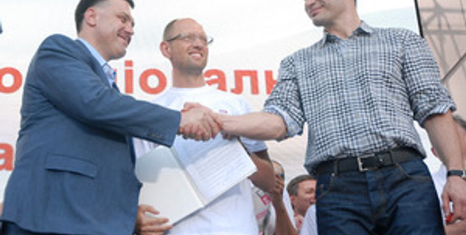 В частности, Тягнибок заявил, что предыдущие два года лидеры оппозиции праздновали вместе, а сегодня решили отдельно.