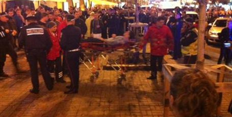 На Крещатике тридцать неизвестных напали с ножами на футбольных фанатов из Великобритании