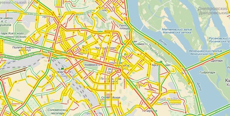 На данное время Яндекс.Пробки сообщают о восьми баллах пробок по десятибалльной шкале. Тянучки парализовали и Печерский район, а вместе с ним и Подол. Кроме того, на подобную ситуацию на дорогах влияет и дождь, который будет лить всю ночь.