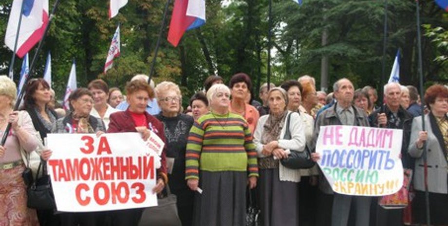 В Симферополе перед зданием Верховного Совета Крыма прошел митинг в поддержку вступления Украины в Таможенный союз. Организатором выступила партия Русское единство