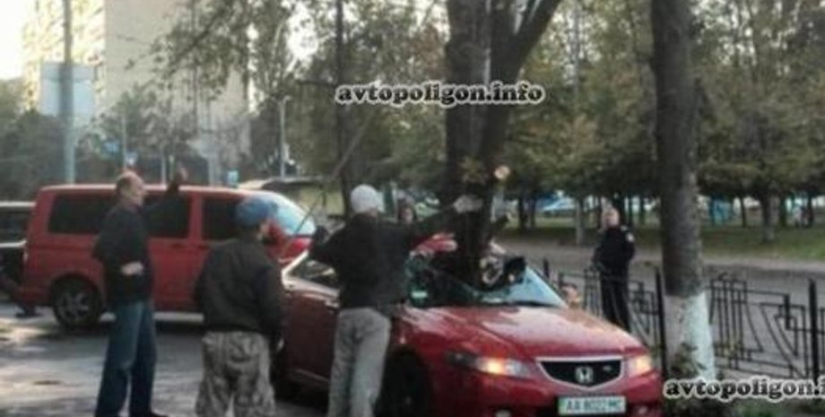 От сильного удара в салоне сработали подушки безопасности. На место происшествия прибыли специалисты из Киевзеленстроя, которые не стали вынимать ветку, а оградили автомобиль и стали ждать милицию. Правоохранители приехали только спустя полтора часа.