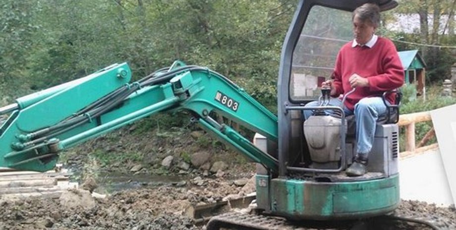 Виктор Ющенко был замечен возле своей карпатской резиденции за рулем экскаватора