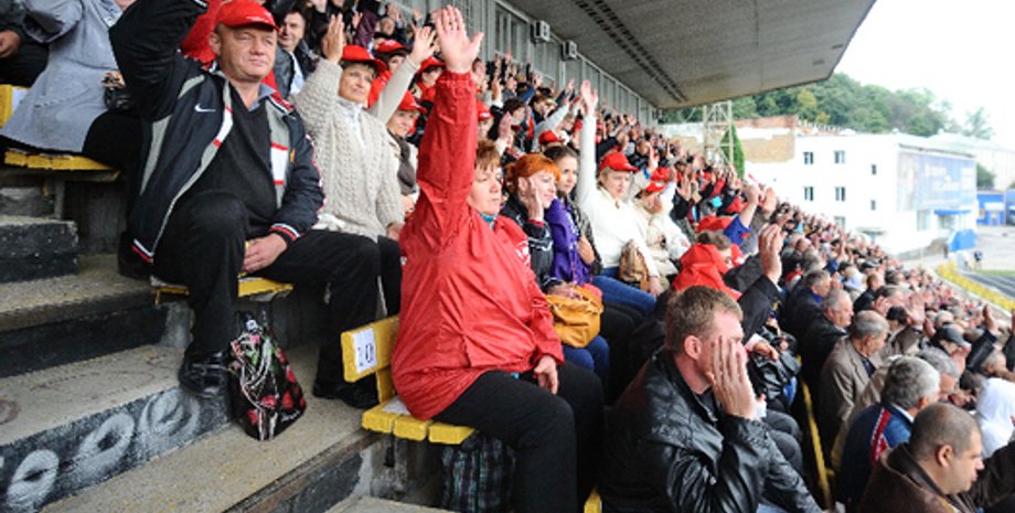 Ранее сообщалось, что на стадионе Спартак в Киеве собираются участники инициированного КПУ собрания по поводу проведения
