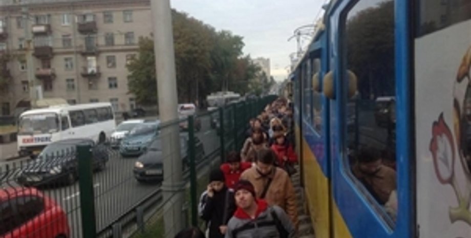 В Киеве в утренний час пик около часа не работал скоростной трамвай