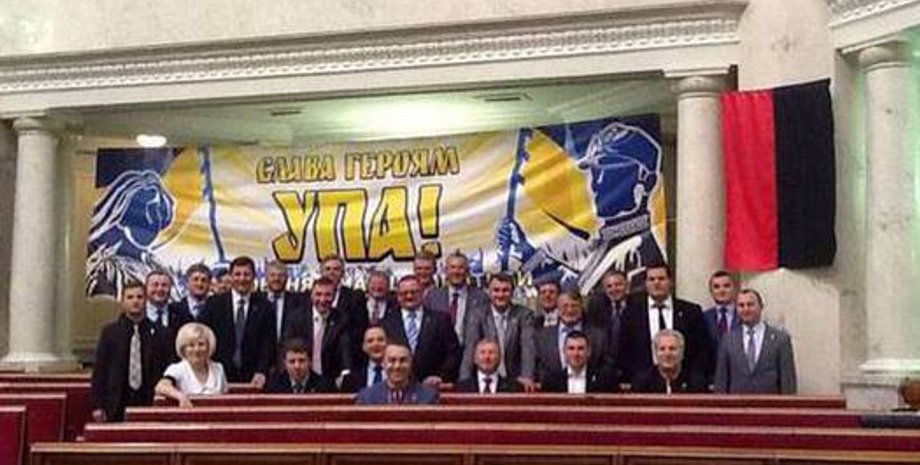 Сегодня утром, 11 октября, депутаты из фракции Свобода вывесили в зале заседаний Верховной Рады красно-черные флаги и баннер Слава героям УПА!. 14 октября, на праздник Покрова, в Киеве пройдет традиционный марш в честь УПА.