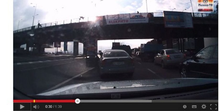 В сети появилось видео падения женщины с моста Метро на проезжую часть