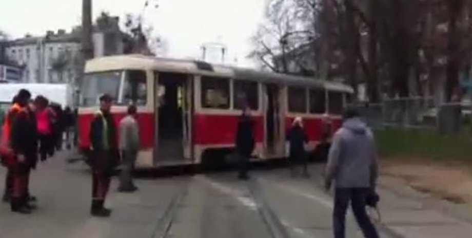 Сегодня утром, 11 ноября, в Киеве неподалеку от станции метро Лукьяновская трамвай сошел с рельсов.