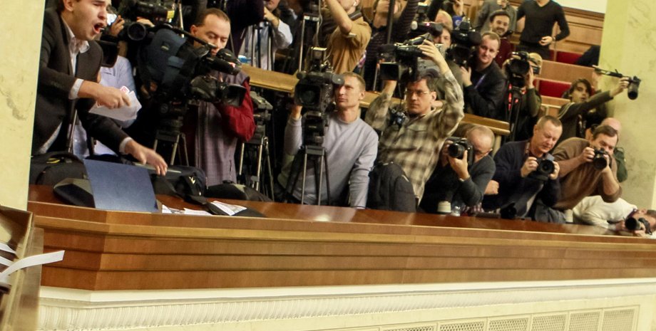 В Верховной Раде Украины сегодня, 20 ноября, ужесточили правила пропуска журналистов в ложу прессы после вчерашнего инцидента со сторонником Олега Ляшко, который разбросал листовки о Юлии Тимошенко.