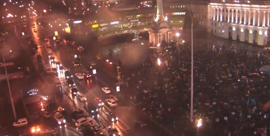 В Киеве на Майдане Независимости, где проходит акция протеста против остановки ассоциации с ЕС, собралось около 3 000 человек. Попытка митингующих установить палатки натолкнулась на сопротивление милиции, сообщает ТСН.