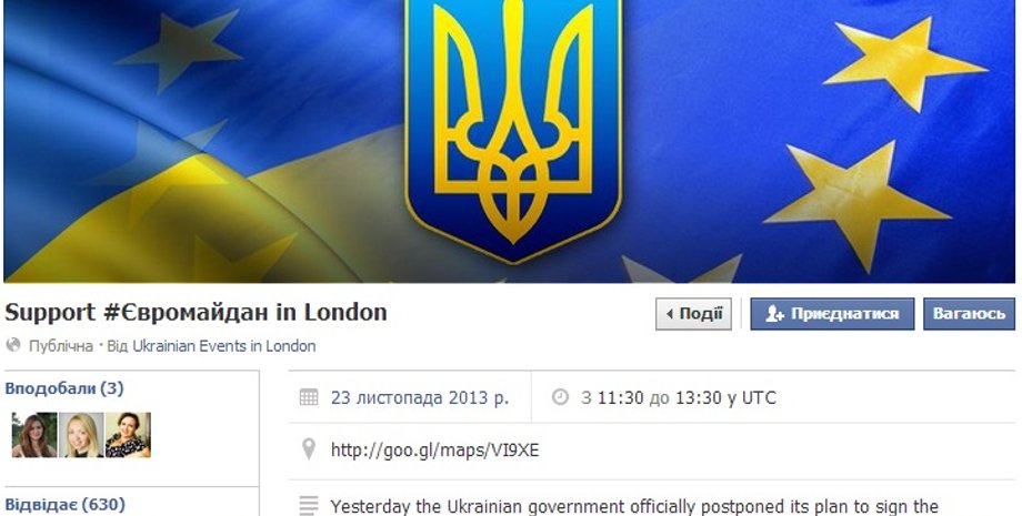 В субботу, 23 ноября, в 11:30 по местному времени в Лондоне пройдет акция в поддержку Евромайдана, сообщается на странице сообщества ЄвроМайдан в Facebook.