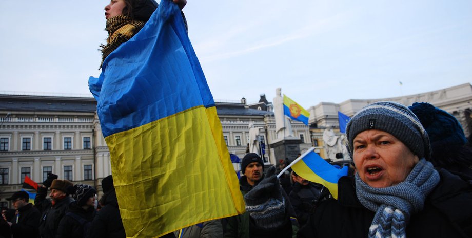 Митингующие скандировали: "Днепр, вставай, Днепр, выходи!", "Днепр и Киев вместе!", "Вчера избили наших детей, а завтра изобьют нас!".