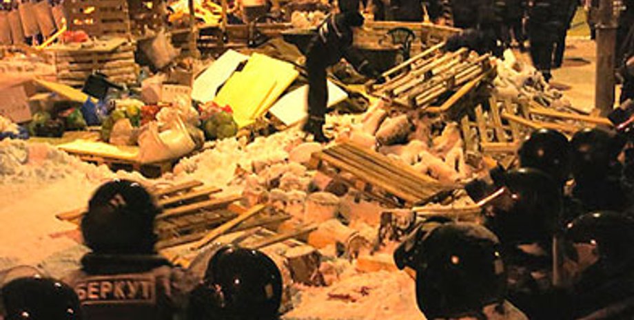 Митингующие возводят новые баррикады на улице Крещатик напротив Дома профсоюзов