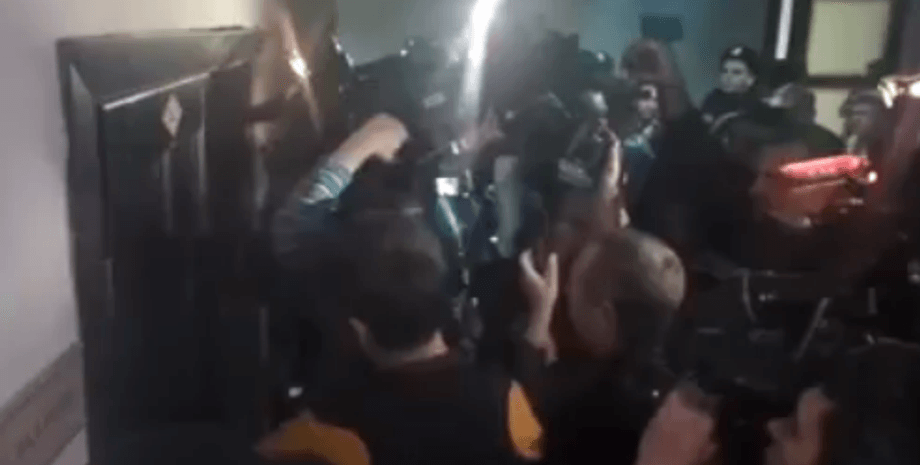 Перед этим народные депутаты выломали дверь в зал заседаний Соломенской РГА.