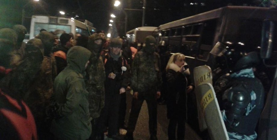Кроме самих автомайдановцев на месте присутствуют несколько десятков людей в масках и шлемах. По словам, одного из активистов Автомайдана Алексея Гриценко, - это могут быть провокаторы. "Сейчас пришли какие-то неизвестные в масках, попрокалывали колеса, они к нам никакого отношения не имеют. Мы нашли начальника отдела РОВД и попросили отреагировать, потому что это преступление. Мы считаем, что это провокаторы, которые это специально делают, чтобы потом сказать, что мы это организовали с самого начала", - сказал Гриценко.