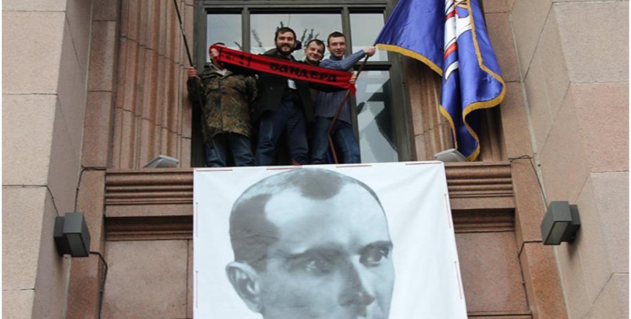 "Люди захотели украсить здание Киевсовета и повесили портрет Степана Бандеры. Это было спонтанное решение. По моему мнению, там не хватает еще портрета Шухевича и Коновальца", - цитирует народного депутата Игоря Мирошниченко УНН.
