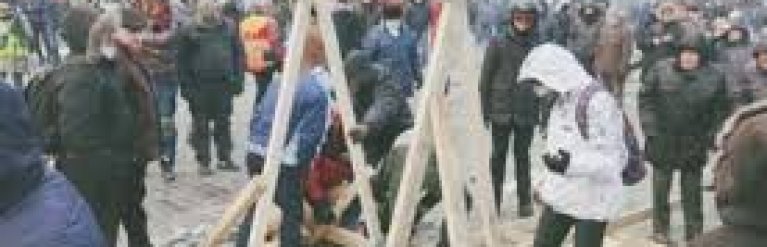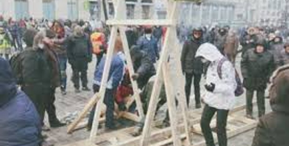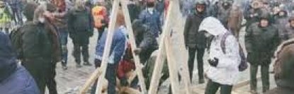 Активисты на ул. Грушевского в Киеве попытались использовать катапульту против кордона спецподразделения "Беркут"