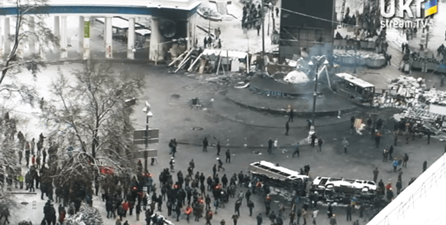 Митингующие начали возводить баррикадные конструкции и ограждать колючей проволокой все баррикады. "Беркут" начал оттеснять митингующих в сторону Европейской площади. Сейчас "Беркут" уже прорвал линию обороны с колючей проволокой, передает УНИАН.