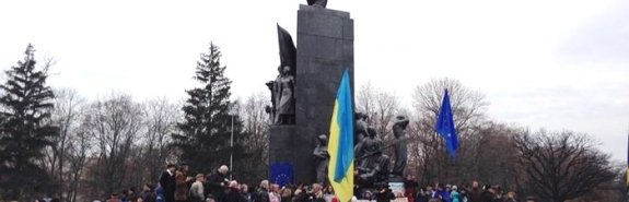 На митинг Евромайдана перед памятником Тарасу Шевченко на улице Сумской в Харькове напали несколько десятков "титушек" с алюминиевыми битами