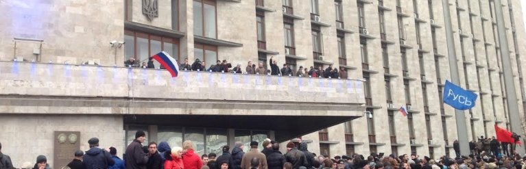Сегодня в Донецке под флагами России, Российской империи и СССР проходит митинг сторонников "народного губернатора" Павла Губарева. Около 2 тыс. людей собрались в 16.00 возле местной облгосадминистрации. Спустя час они взяли штурмом здание ОГА, которое охраняли несколько сотен милиционеров