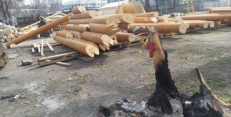 В Киеве на улице Институтской в месте массового расстрела участников Майдана строят деревянную часовню