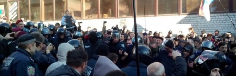 В сети появилось видео, как милиция старается защитить активистов Евромайдана от сепаратистов