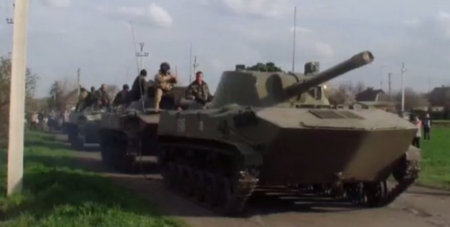 В Краматорске колонна украинской техники из четырех БМД вырвалась из блокады пророссийских сил. Местные пустились в погоню на шести авто и квадроцикле, передает "Громадське ТБ".