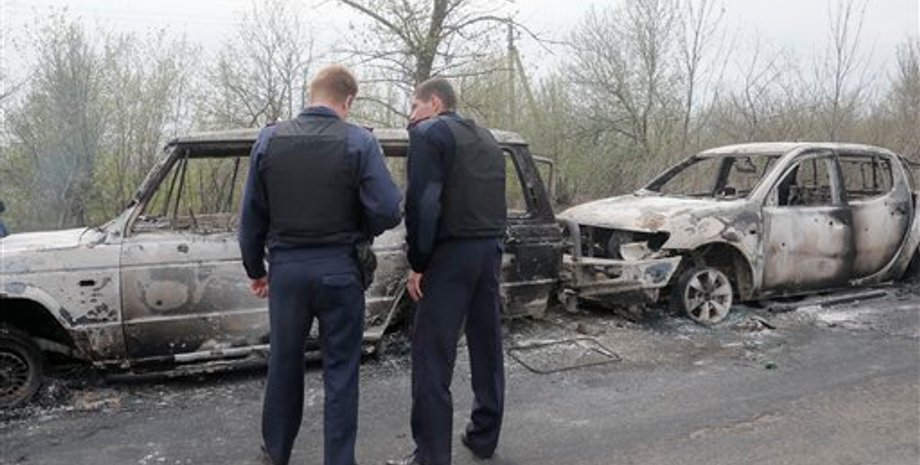 Неизвестные на двух автомобилях, около 12 человек, уехали с места происшествия в направлении Харьковской области. При этом они забрали с собой убитых и раненых, их количество неизвестно. Два их автомобиля, которые остались на месте, были уничтожены активистами в результате поджога", - говорится в сообщении донецкой милиции.