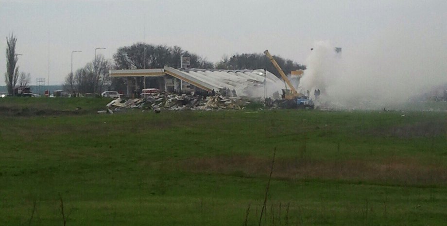 В 08:45, прибыв на место происшествия, спасатели установили, что взрыв с последующим горением произошел в административном здании автозаправочной станции "БРСМ".
