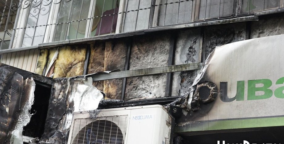 Сегодня ночью в Николаеве неизвестные подожгли отделение Приватбанка, которое находится на проспекте Ленина, 173.