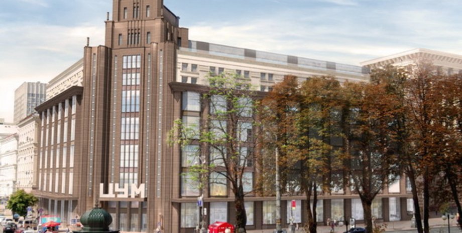 Фасад ЦУМа в центре Киева, где с 2012 года проходит масштабная реконструкция, будет закрыт флагом Украины площадью более 3300 кв м - на данный момент этот флаг является самым большим на территории Украины.