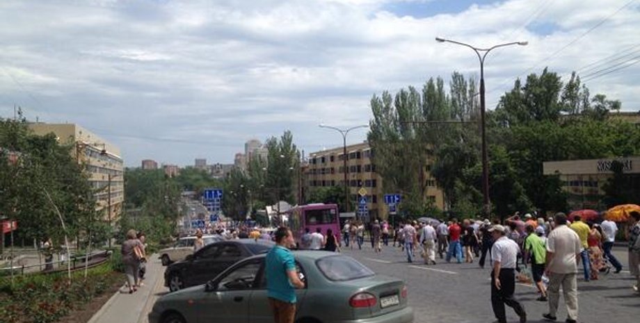 Участники митинга против проведения выборов президента с площади Ленина в Донецке, перекрыв движение, двинулись вниз по проспекту Ильича. Об этом сообщает "Остров".