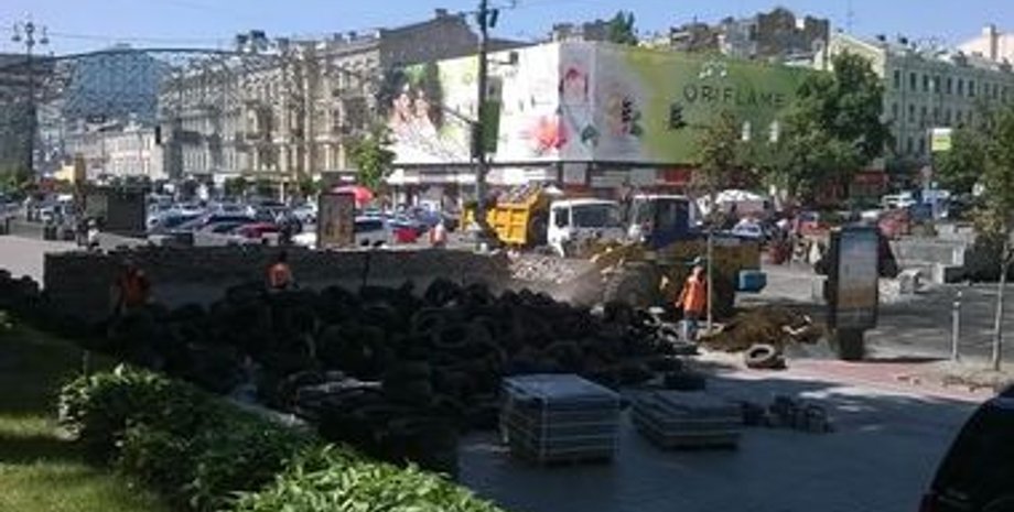 Разобранная баррикада была расположена на пересечении ул. Крещатик и Богдана Хмельницкого в районе ЦУМа.