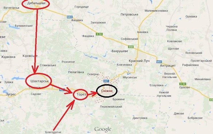 От террористов зачищены города Шахтерск и Торез, силовики вошли в город Снежное.