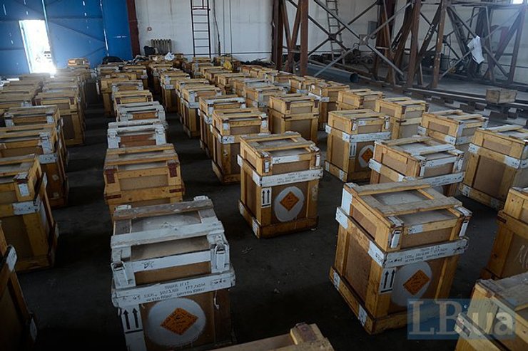 Боевики хранили на базе огромное количество боеприпасов и ящиков с порохом, предположительно, с советской маркировкой. Их насчитывается до 50.