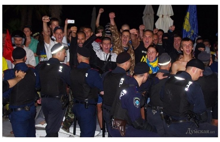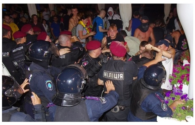 Вечером в воскресенье на пляже ночного клуба "Ибица" в Аркадии произошло столкновение между милицией и активистами Евромайдана, которые пытались сорвать концерт Ани Лорак из-за ее непатриотичной позиции