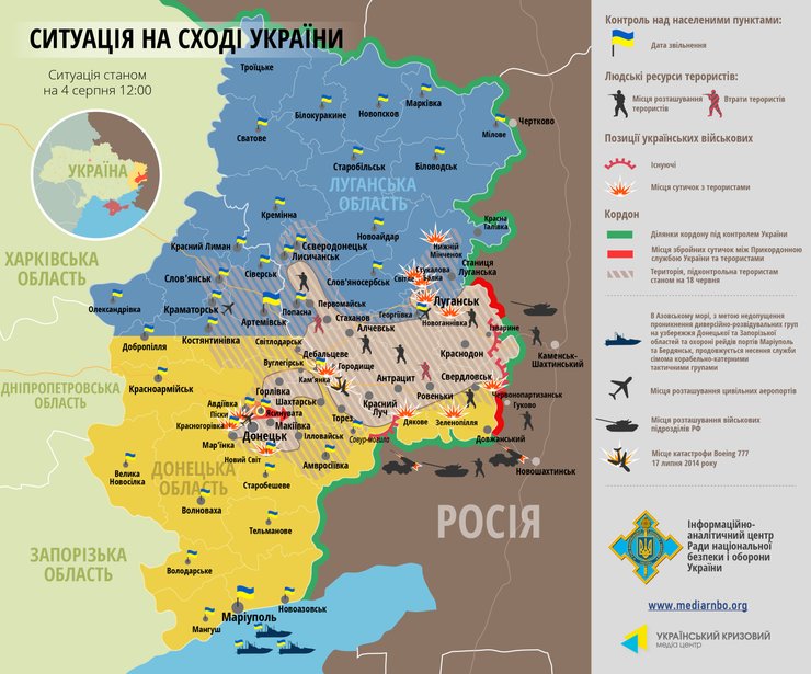 Ночь с 3 на 4 июля характеризовалась повышением активности бандформирований. Увеличилась интенсивность обстрелов позиций сил АТО, в том числе из установок "Град", танков и минометов.
