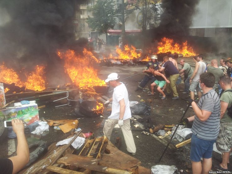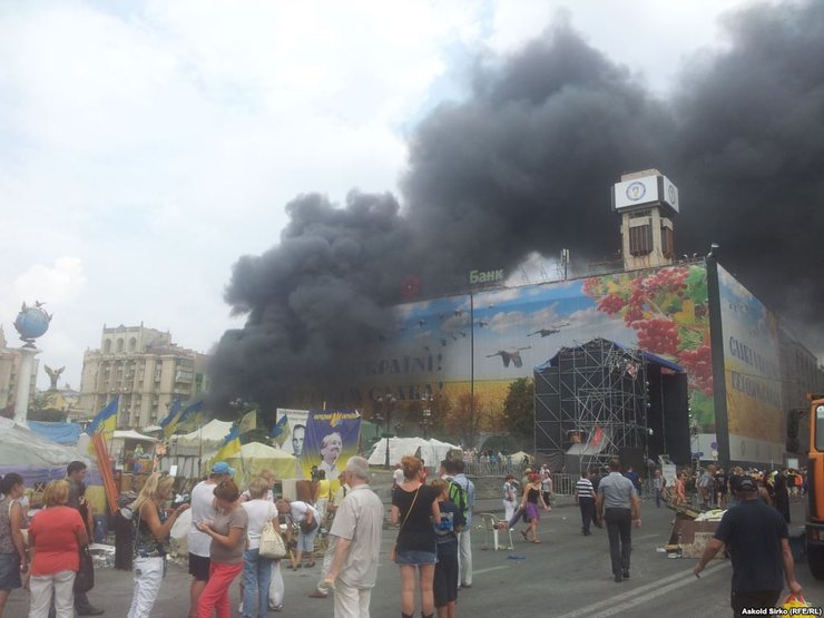 На Майдане около 12:00 подожгли шины со стороны улицы Михайловской. Однако киевляне и пожарные быстро потушили огонь, передает "Радио Свобода".