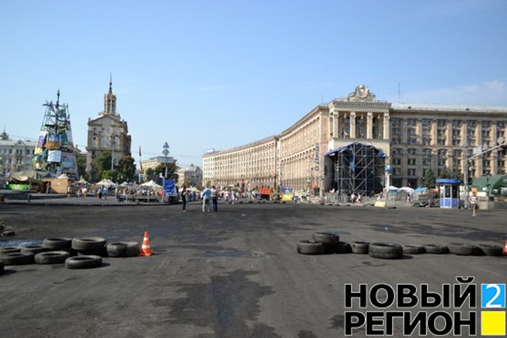 По итогам субботника почти полностью очищена площадь перед стелой. Однако, баррикады и палатки со стороны улицы Институтской пока остаются. Их договорились не трогать, поскольку там погибли многие активисты во время событий 18-20 февраля. Также остаются на месте кучи брусчатки. Ее не вывозят, чтобы использовать для восстановления тротуара.