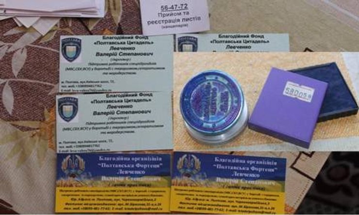 "Во время обыска помещений злоумышленников правоохранители обнаружили карты местности с обозначенными "целями" - объектами запланированных терактов. Также изъято взрывное устройство, начиненное саморезами и гвоздями, и огнестрельное оружие. Установлено, что злоумышленники на основании поддельных документов создали общественную организацию "Полтавская Крепость", которая собирала деньги якобы на нужды АТО. На самом же деле деньги использовались для финансирования противоправной деятельности членов группы", - добавили в пресс-службе.
