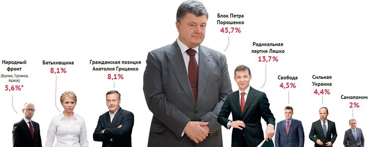Новосозданная политсила Арсения Яценюка и Александра Турчинова "Народный фронт" со своими кандидатами определялась в последний момент. Многодневные переговоры об объединении с Блоком Порошенко и формировании общего избирательного списка результата не принесли. По информации Фокуса, Яценюк и Турчинов потребовали от партнеров 30% квоты в партийном списке и смену названия блока — на Блок Петра Порошенко "Народный фронт". У президента на такие условия не согласились, и "фронтовики" были вынуждены идти на выборы самостоятельно, организовав съезд "с колес" — список кандидатов, еще и с рукописными поправками, на съезде был в единственном экземпляре.