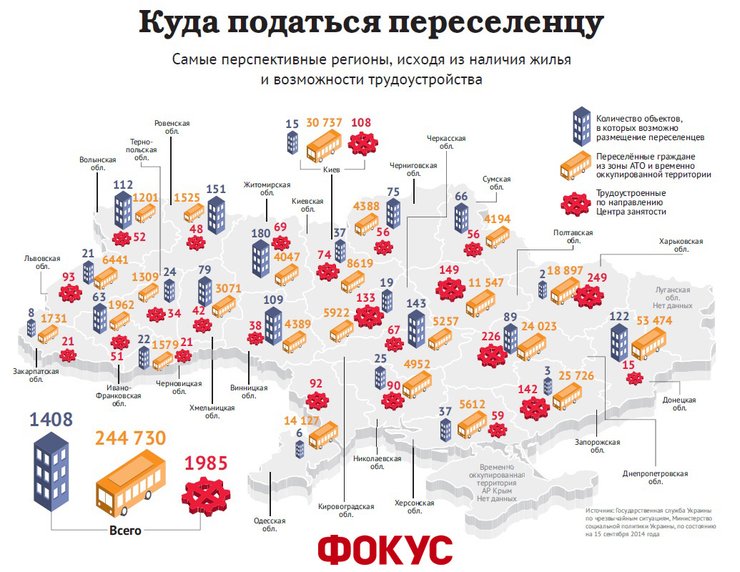Пока что больше всего переселенцев сосредоточено в Донецкой области (около 53 тысяч человек), Киеве (30 тысяч), в Запорожской (25 тысяч) и Днепропетровской (24 тысячи) областях. А вот на Волынь или Тернопольщину люди из Донбасса ехать не хотят. Например, в Ровенской области мы разместили всего лишь чуть более тысячи переселенцев.