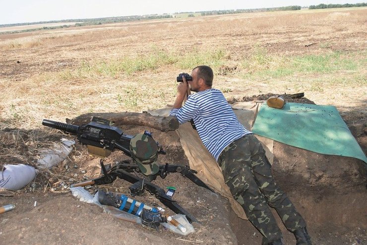 "Нуль". Так на фронте называют передовые посты. В конце длинной лесополосы, разрезающей пшеничные поля, видны приводные мачты аэропорта и жилые кварталы Луганска. Обстановка на "нуле" своеобразная: палатка, где отдыхают бойцы, вырытые на случай обстрела щели, вкопанные в землю два стола — обеденный и кухонный, скамейки. На одном из деревьев икона. На кухонном столе кастрюли с заготовками для борща — натертая морковка, чищеная картошка, свекла, лук. Застенчивый мальчик-повар извиняющимся голосом говорит, что пока может предложить только хлеб и тушенку, все остальное еще готовится. На стандартный вопрос командиру роты "Как обстановка?" следует не вполне стандартный ответ: