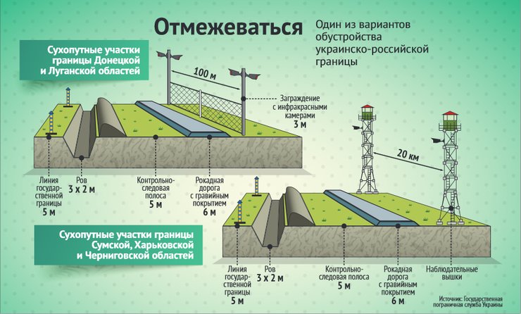 Сейчас в Госпогранслужбе предвидят, что попытки возобновить диалог по демаркации границ в Кремле воспримут в штыки. В то же время проводить демаркацию в одностороннем порядке нет смысла — Россия ее не признает. Остается лишь один сценарий — строить "стену" без согласованных границ. Для этого, правда, на всей протяженности спорного кордона украинской стороне придется значительно отступить вглубь страны — на территорию, которую Москва признала украинской.