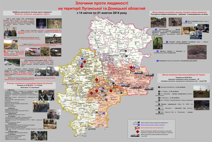 Напомним, Служба безопасности Украины начала поиски концлагерей и массовых захоронений в Донбассе. Вчера спецслужба представила доказательства преступлений против человечности, которые совершают боевики в Донбассе. Их масштабы представлены на карте, где отмечены места концлагерей террористов, застенков карательных органов террористических организаций, мест пыток и расстрелов мирного населения, массовых захоронений убитых людей.
