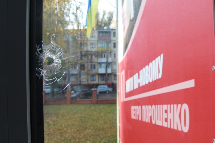 Как сообщили в пресс-службе штаба, в 01.43 пятницы охранник услышал громкий хлопок, а на камере видеонаблюдения увидел вспышку возле офиса, вызвал милицию.